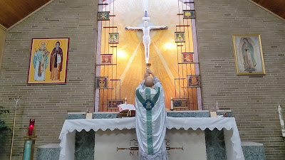 Every week, we come here to worship God. In a miraculous re- presentation of the Sacrifice of Jesus on the Cross, we are given His Body and Blood, Soul and Divinity under the form of bread and wine.